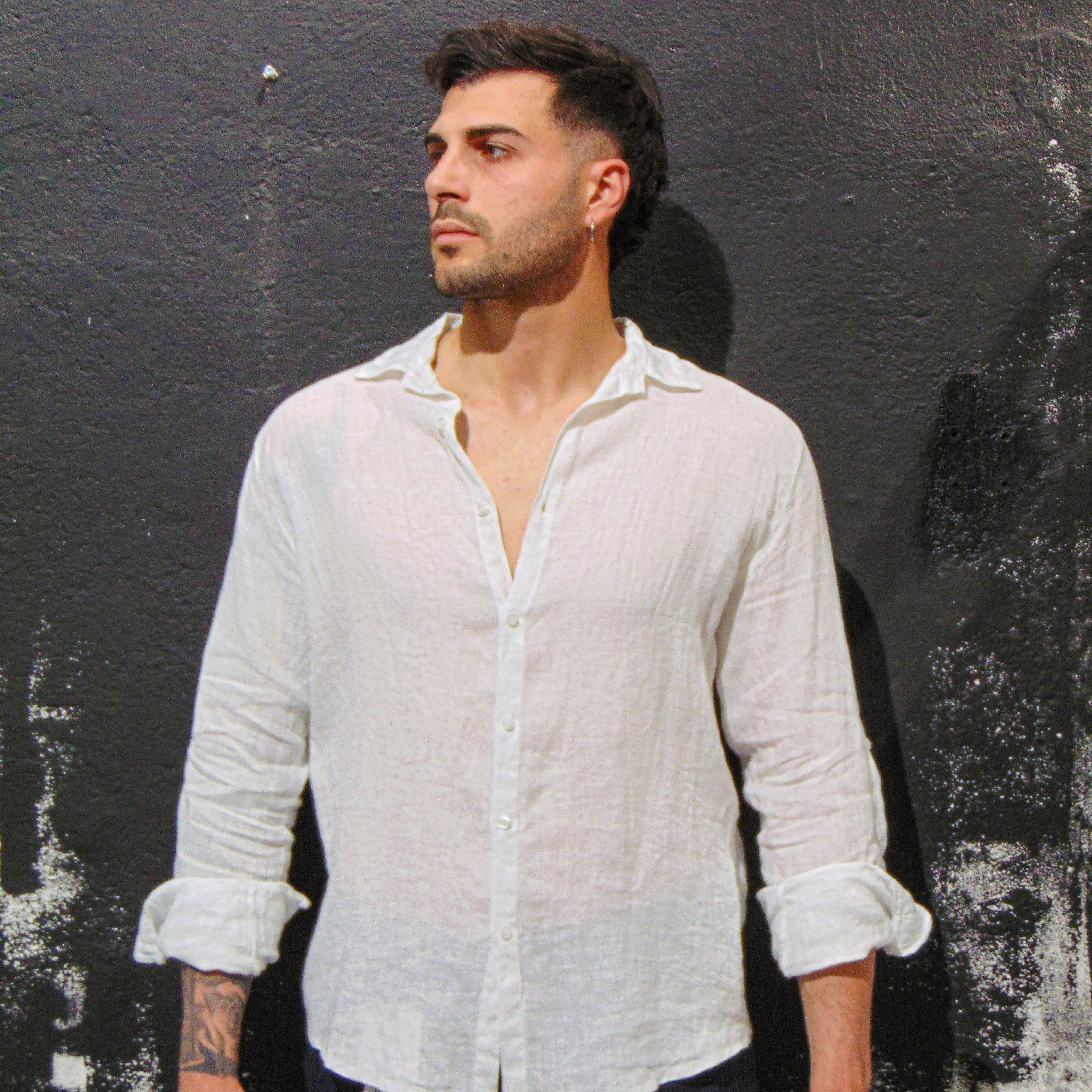 Camicia in lino colletto francese elegante, leggera e versatile.